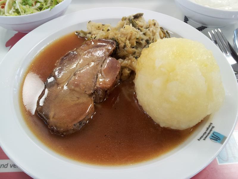 | Der Rahmwirsing war heute ein bisschen fad, ist sonst eigentlich sehr lecker. Der Braten ist sowieso immer gut, die Soße könnte ne Note vertragen! | |