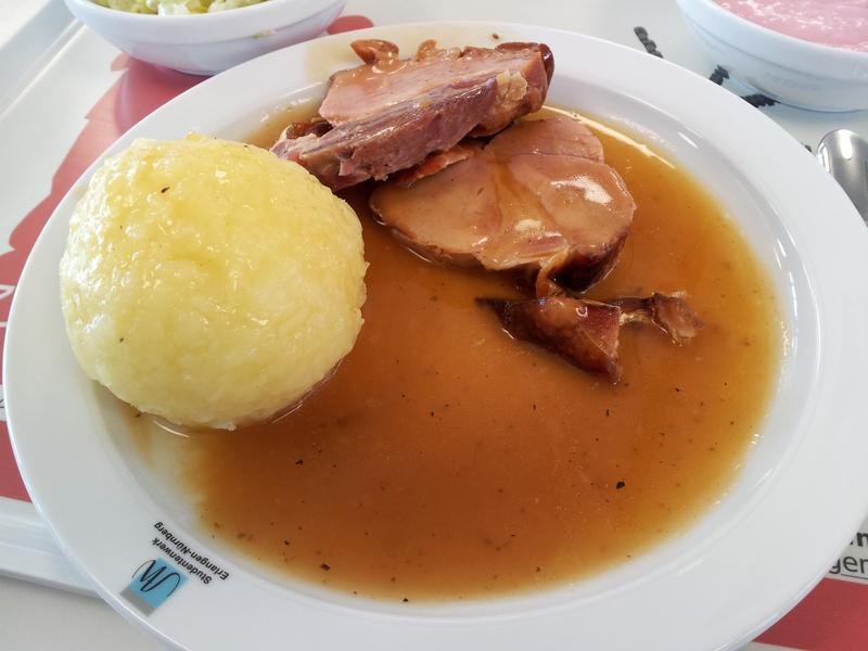 Echt tolles Fleisch. Richtig zart. Soße und Kloß auch gut. Bestes Mensaessen seit langem.