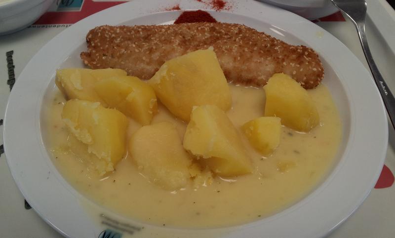 panade mal erstaunlich lecker mit dem sesam.. nur wie so oft bei panaden in der Mensa an vielem stellen durchgeweicht.. mit reis war die sauce zwar kein geschmackliches Highlight aber zumindest mal gut runterzubringen