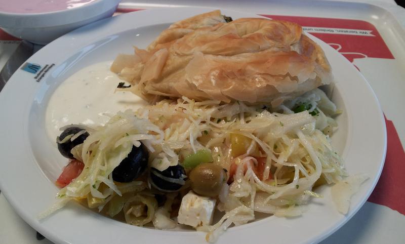 | Hab es am Tag danach für 2,50 bekommen und war durchweg zufrieden. Aber auch für 3,50 finde ich es inkl. Beilage noch preiswert. Geschmacklich sehr lecker, wie frisch aus der Dönerbude. Salat hauptsächlich eingelegter Krautsalat, aber knackig und gut. Dip ähnlich wie Tzaziki, auch lecker. Für mich das Beste Mensa-Essen seit langem. | |