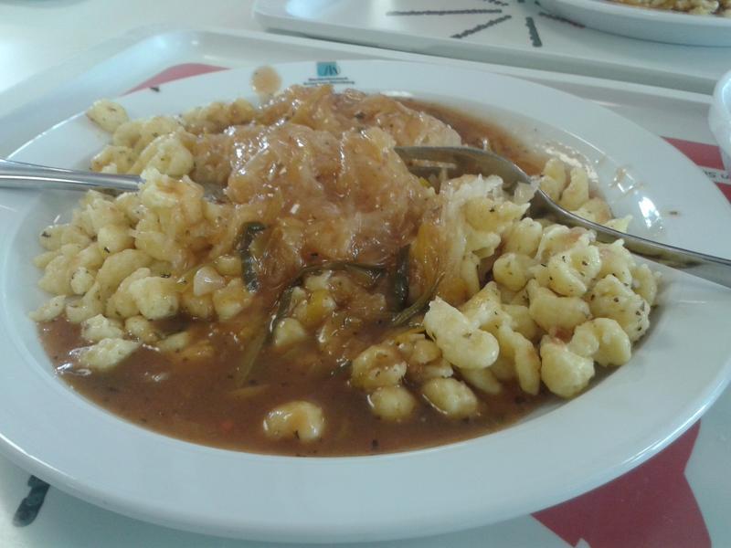 | Mit dem Kraut Abwechslung zu den Käsespätzle. Aber sonst genauso geschmacksarm, ja. | |