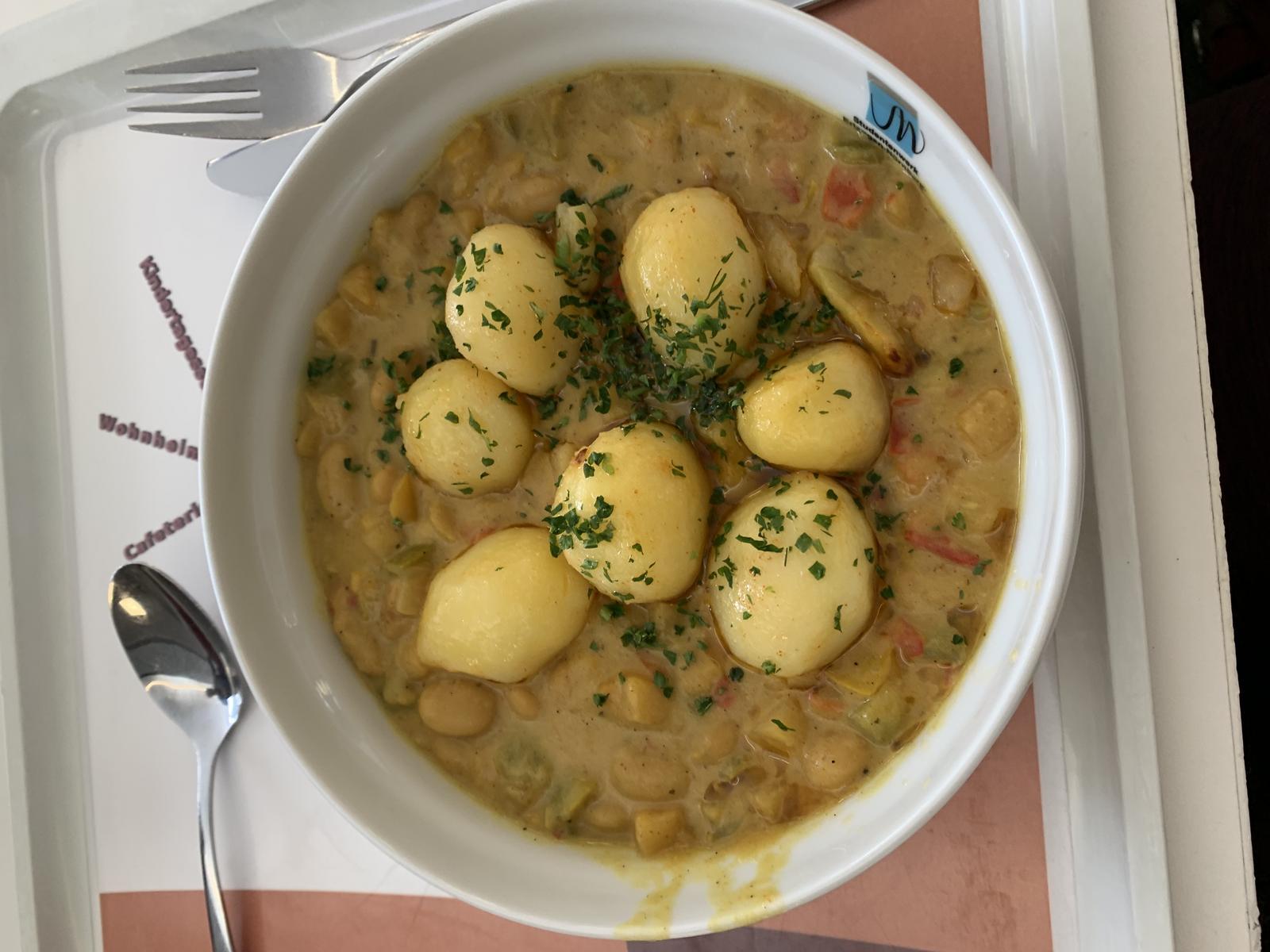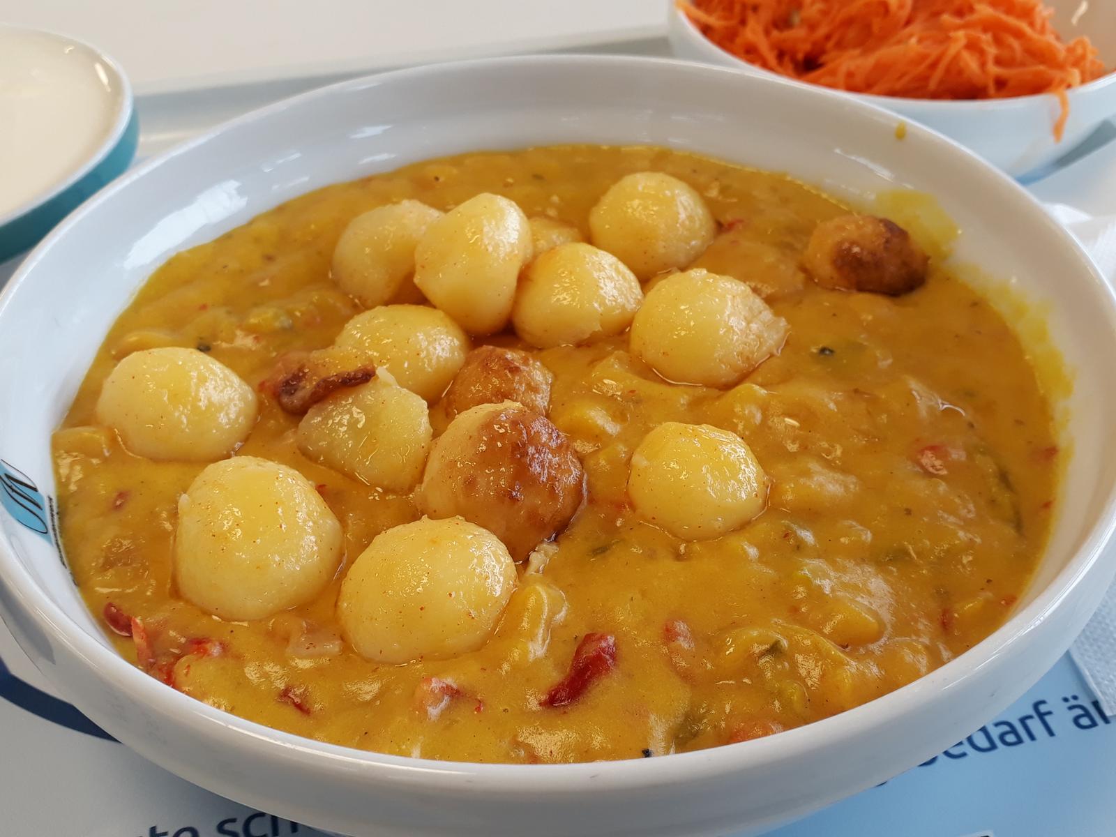 | Sehr mild gewürzt, hatte mir mehr schärfe gewünscht sowohl beim Curry als auch bei den Chili-Kartoffeln | |