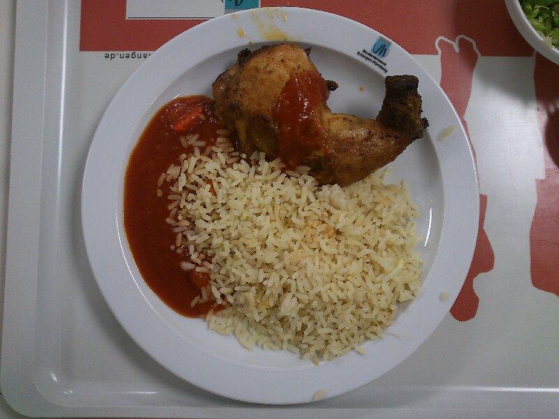 | Die Spaetzle waren gut, die Sosse sehr lecker. Die Haehnchnkeule auch sehr gut. Sie war nicht zu trocken und die Haut war sogar fast etwas knusprig ;) Es war auch reichlich! Fuer ein Mensaessen: 4,5/5 | |