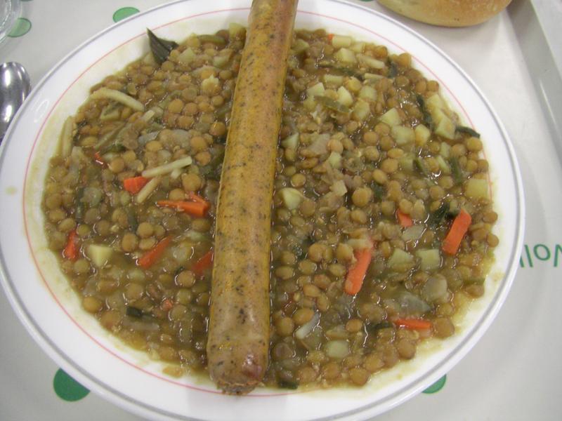 | Die Sojawurst war eher geschmacksneutral, der Linseneintopf geniessbar | |
