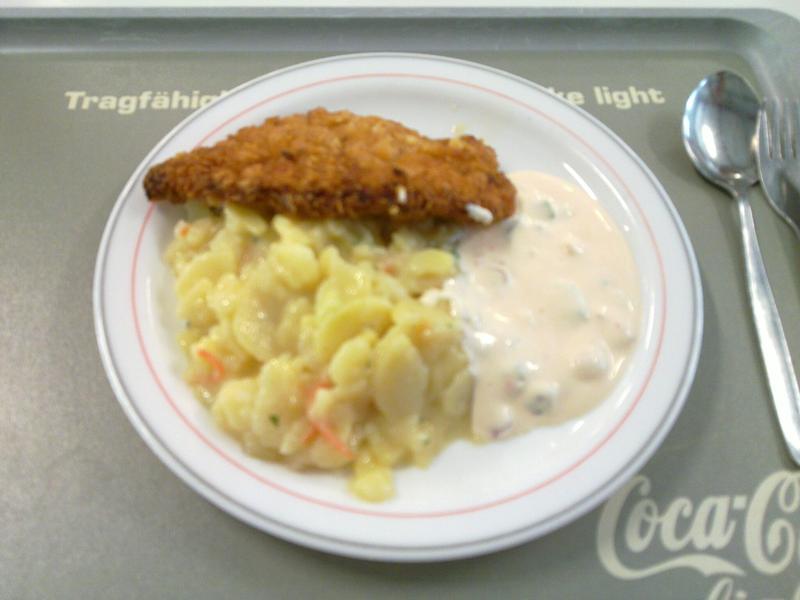 | Heute mit Pommes oder Nudelsalat. Pommes waren ungesalzen, Fleisch war ok, Knuspermantel ohne knusper. Insgesamt befriedigend. | |