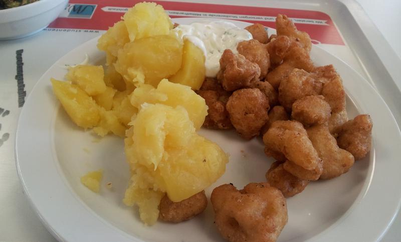 | Leckerer Blumenkohl, sehr gute Kartoffeln und Mensa-Standarddip. Alles in Allem gut. | |