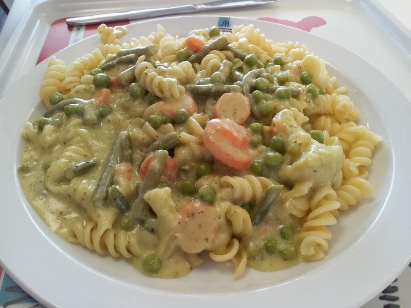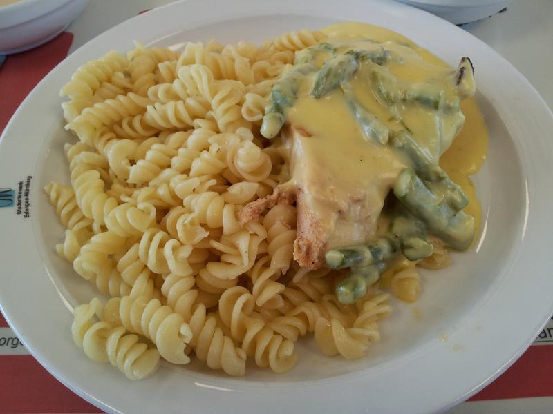 | Das Hänchenbrustfilet war richtig weich, beinahe als zart zu bezeichnen und hat gut geschmeckt. Spätzle hatten den gleichen Geschmack wie immer, Soße war relativ gut. Der Spargel war ein bisschen bitter, aber nicht so dass er extrem ekelhaft geschmeckt hätte | |