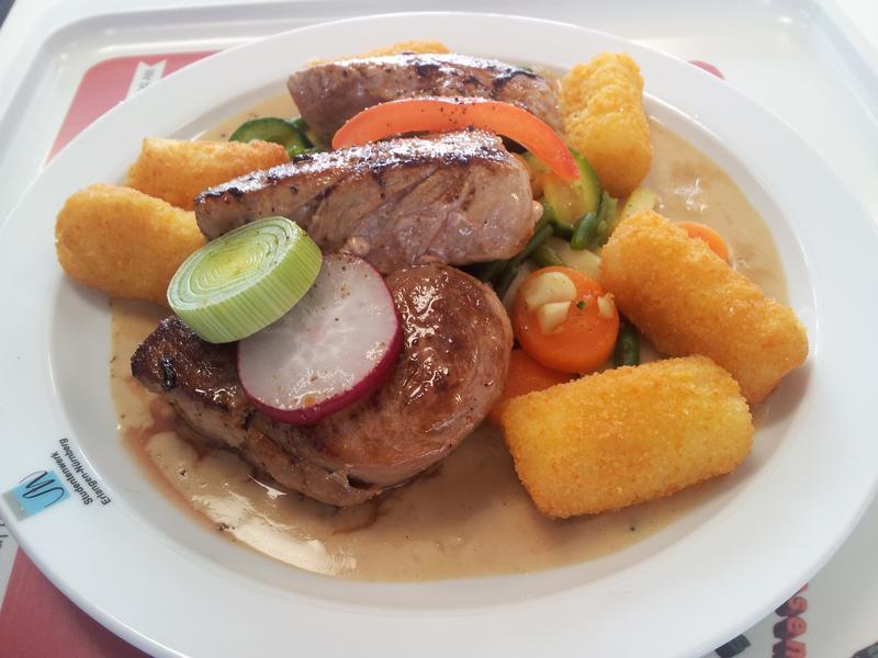 | Sehr lecker, wenn auch eines der Filets etwas zu "medium" war. Seit wann möchte man Schweinefleisch denn nicht durch haben, der Typ an der Ausgabe hat mich das ernsthaft gefragt… Liebevoll angerichtet und garniert, seinen Preis imho Wert. Portionsgröße war ordentlich, man wurde gut satt davon. 5 Sterne im Vergleich zum restlichen Mensa-Fraß trotz des Medium-Filets, weils mich nicht umgebracht hat. | |
