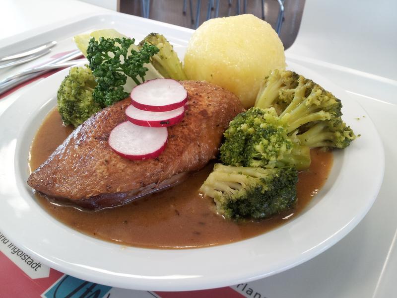 | Natürlich nicht das beste Schäuferla, das man je gegessen hat. Aber ein Grund, sich darauf zu freuen. War noch saftig, die Kruste trotzdem knusprig und nicht zu hart. Soße schmeckte eher nach Majoran als nach Kümmel. Leider musste man das Kraut extra zahlen. 4.5/5, ein Grund, in die Mensa zu gehen. | |