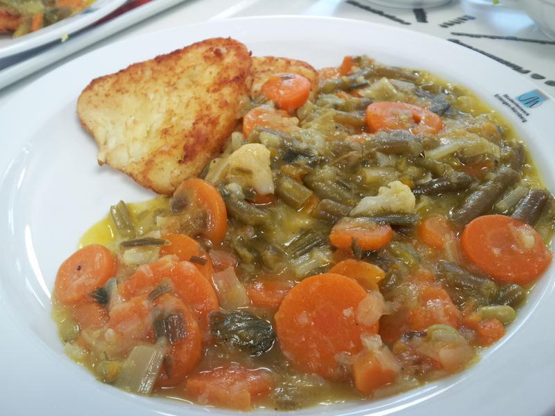 | Die Röstis waren bei mir nicht gefüllt und das Gemüse auch durchaus lecker. Imho echt essbar, ich würde sagen gesunder Mensa-Durchschnitt. | |