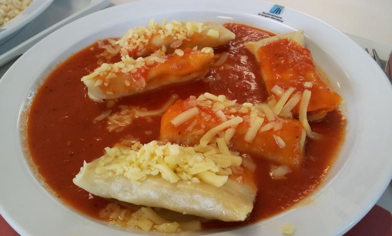 | Waren eher kleine Maultaschen mit Tomatensoße, schmeckten aber gut. | |