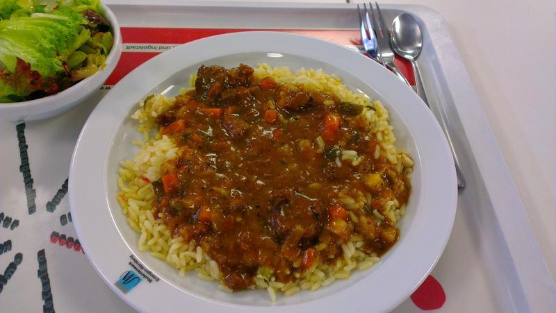War in Ordnung. Man hat weder vom Curry, noch vom Cocos wirklich was geschmeckt (beim Cocos wars aber auch eher zu erwarten...). Einzige Mankos waren, dass a) keine Spätzle als Beilage gab, die super gepasst hätten und b) dass recht wenig Fleisch in der Portion waren. Ansonsten hats gepasst.