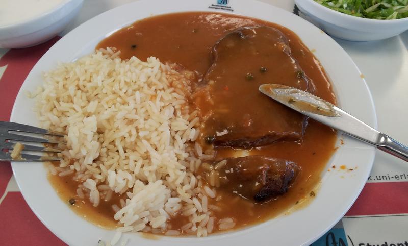 Eigentlich echt gut, für den Preis mit Beilage wird man auch ordentlich satt. ich konnte sogar ganze Pfefferkörner in der Soße finden und das Fleisch war auch iO. Also gibt nix zu meckern.