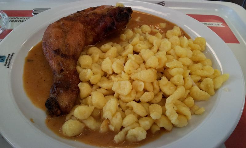 | Also.. die Spätzle waren super wie immer! Kann man echt gut essen. Die Soße war ok. Die Hähnchenkeule war auch essbar, auf jedenfall etwas besser als das sonst übliche Hähnchen(filet) Fleisch. | |