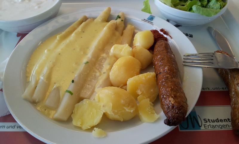 | Ich bin zwar erst kurz vor 14 Uhr in die Mensa, aber der Spargel war ziehmlich verkocht und die So0e teils geronnen. Alles in allem essbar | |