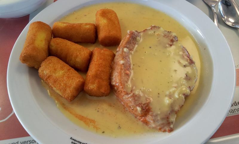 | War erstaunlich gut. Fleisch war sogar mal ganz gut, Soße und Spätzle waren auch nicht schlecht... nur etwas zu stark gewürzt war das ganze. | |