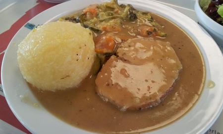 (81)| Rollbraten, Soße und Rotkraut sehr gut. Kloß von gummiartiger Konsistenz und für mich als Thüringer nicht akzeptabel! | |