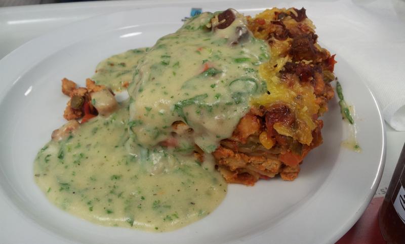 | Die Nudeln waren leider leicht verkocht, aber alles in allem ein gutes Essen. Unbedingt nach mehr Soße fragen bei der ausgabe | |