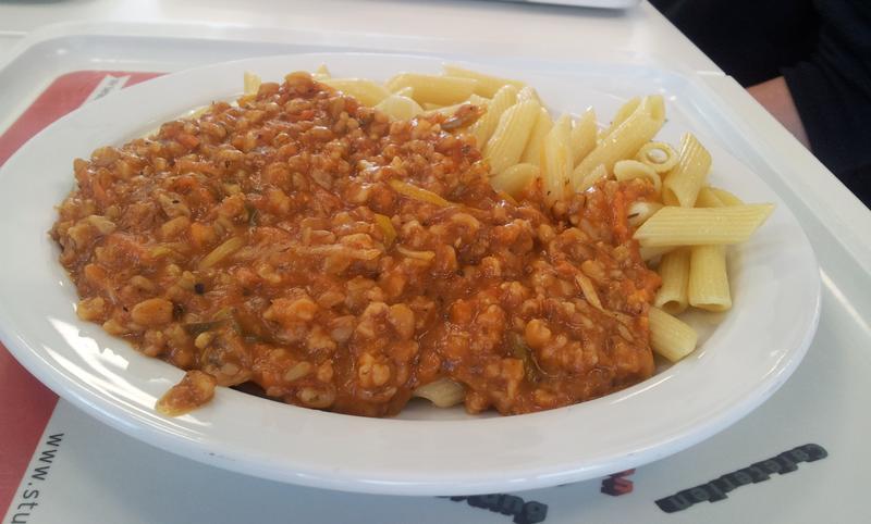 | Soße sehr lecker, kann durchaus mit der Sojabolognese mithalten! Nudeln dagegen Mensadurchschnitt. Fazit: gerne öfter!! | |