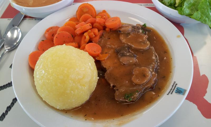 | Heute mit recht guten Klößen, Fleisch auch top. Auch nicht zu wenig. | |
