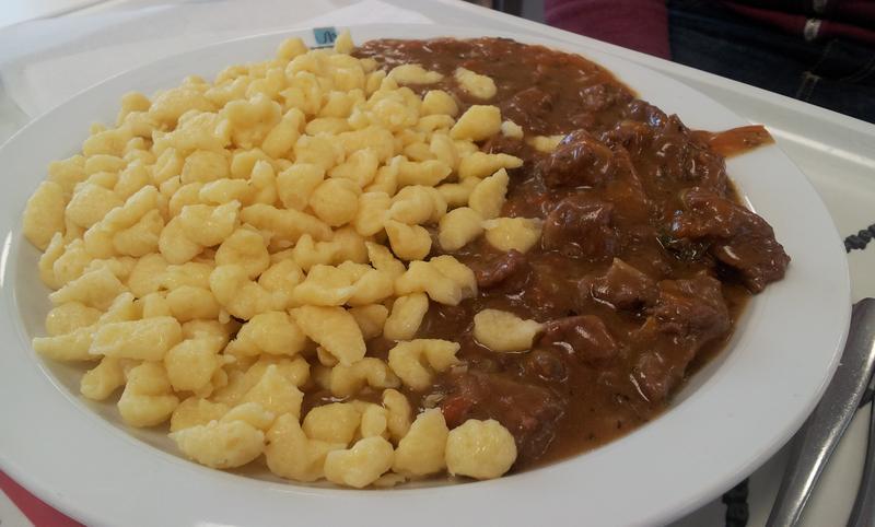 | Das war tatsächlich echt mal ein gutes Essen! Es hat insgesamt sehr gut geschmeckt und auch die Portion war in Ordnung. In letzter Zeit hat man öfter mal das Gefühl, dass die Mensa mit Geschnetzelten und Gulasch-Gerichten sehr gut zurecht kommt, da die doch meist essbar bis sogar sehr gut sind. Fazit: Jeder Zeit wieder! | |