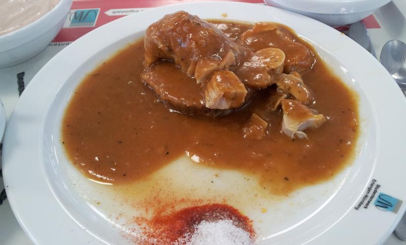 | Der Braten war zäh und sehr trocken. Meiner Meinung nach war in der Soße zu viel Senfkörner drinnen. Hat extrem vorgeschmekt. War allgemein nicht gut. | |