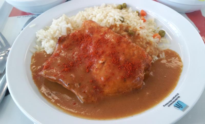 | fleisch sehr salzig mit standart mensa sosse.. plus 3 pfefferkörner aber insgesamt akzeptabel | |