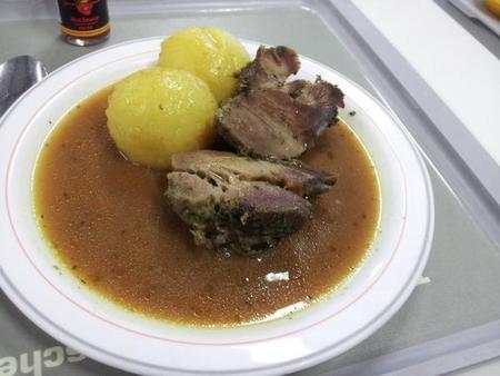 | Zäher und trockener Braten, zu saures Sauerkraut, Klöße annehmbar. | |