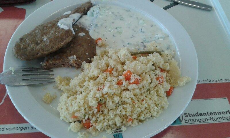 | Die Steaks waren viel zu klein, allerdings war der Berg Couscous mehr als ausreichend. Der Dip war eher langweillig und nichts hat nach Minze geschmeckt. Alles in allem aber ganz gut. | |