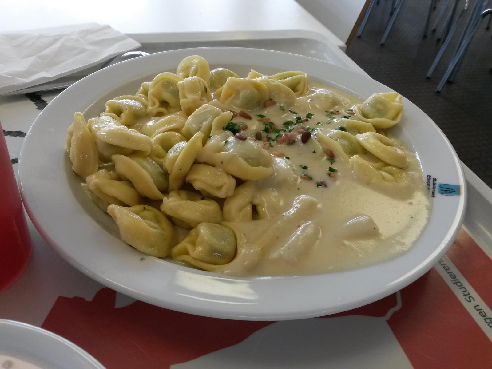 (11)| Die tortelini waren lecker. der spargel und die tomaten waren nicht so geil. die basilikumblaetter dagegen waren gut. aber man muss manchmal auch mal was gesundes essen. | |