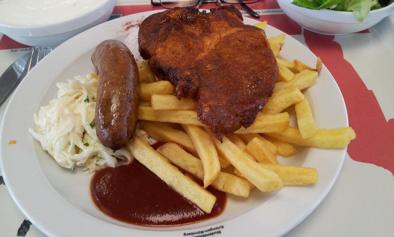 | Wurst und "Kartoffelstäbchen" sehr gut. Beim Steak war dann doch geschmacklich das Leiden des Spendertieres in der Massentierhaltung zu erahnen... | |