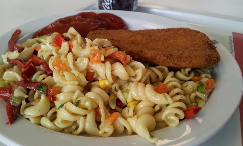| Der Nudelsalat als Beilage war gut und auch das Schnitzel. Einziges Mank war die etwas matschige Schnitzelpanade, aber das war nicht so schlecht. ;) | |