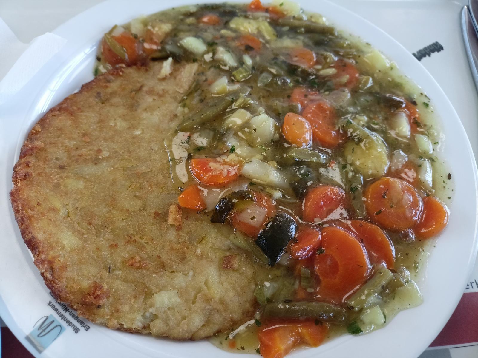 | Ganz lecker. Rösti unaufregend aber gut, Gemüse nicht verkocht, also auch essbar. | |