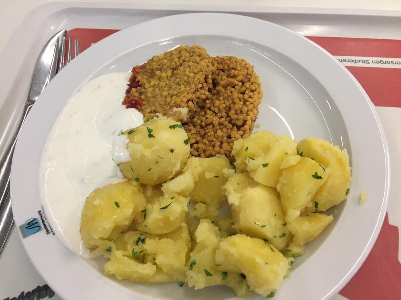 | Eines meiner Lieblings Mensaessen. Die Kombination der leicht süßlichen Bete, der knusprigen Panade, Kartoffeln und Sauerrahm ist klasse. | |