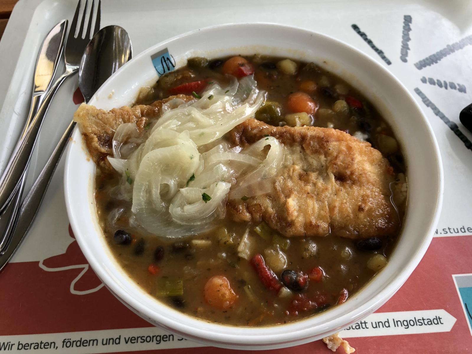 | War richtig gut, man hat sogar ein paar Pfefferkörner angetroffen. Zusätzlich gabs heute auch noch Kroketten als Beilage. 5/5 | |