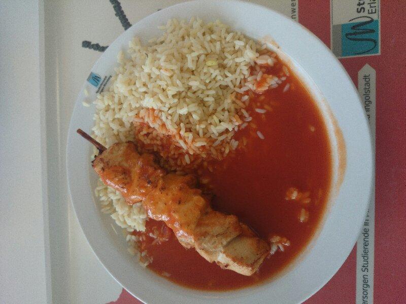 | Fleisch gut, Soße gut und Reis passt hervorragend dazu. War so überrascht, da habe ich den Spieß gleich mit verdrückt. Eins der besseren Mensa-Gerichte. 4/5 | |