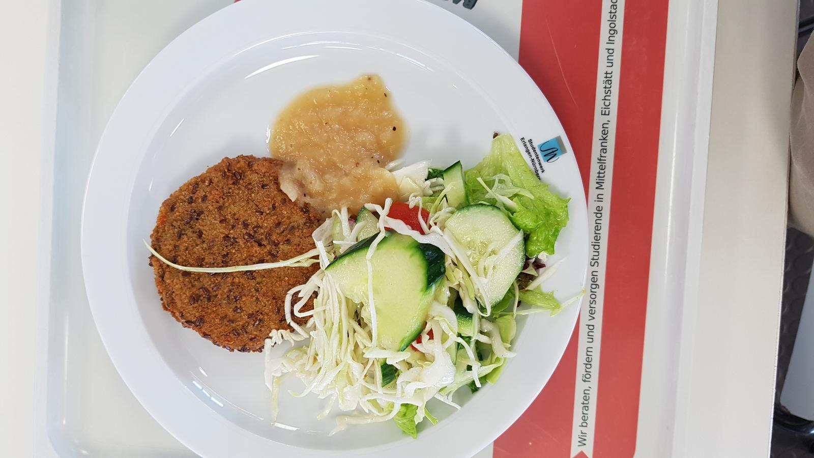 | Der Bratling war erstaunlich genießbar, leider war es viel zu wenig von diesem Chutney, und mit dem Salat dazu wird man auch nicht so richtig satt. Vielleicht wahlweise mit Salzkartoffeln? | |