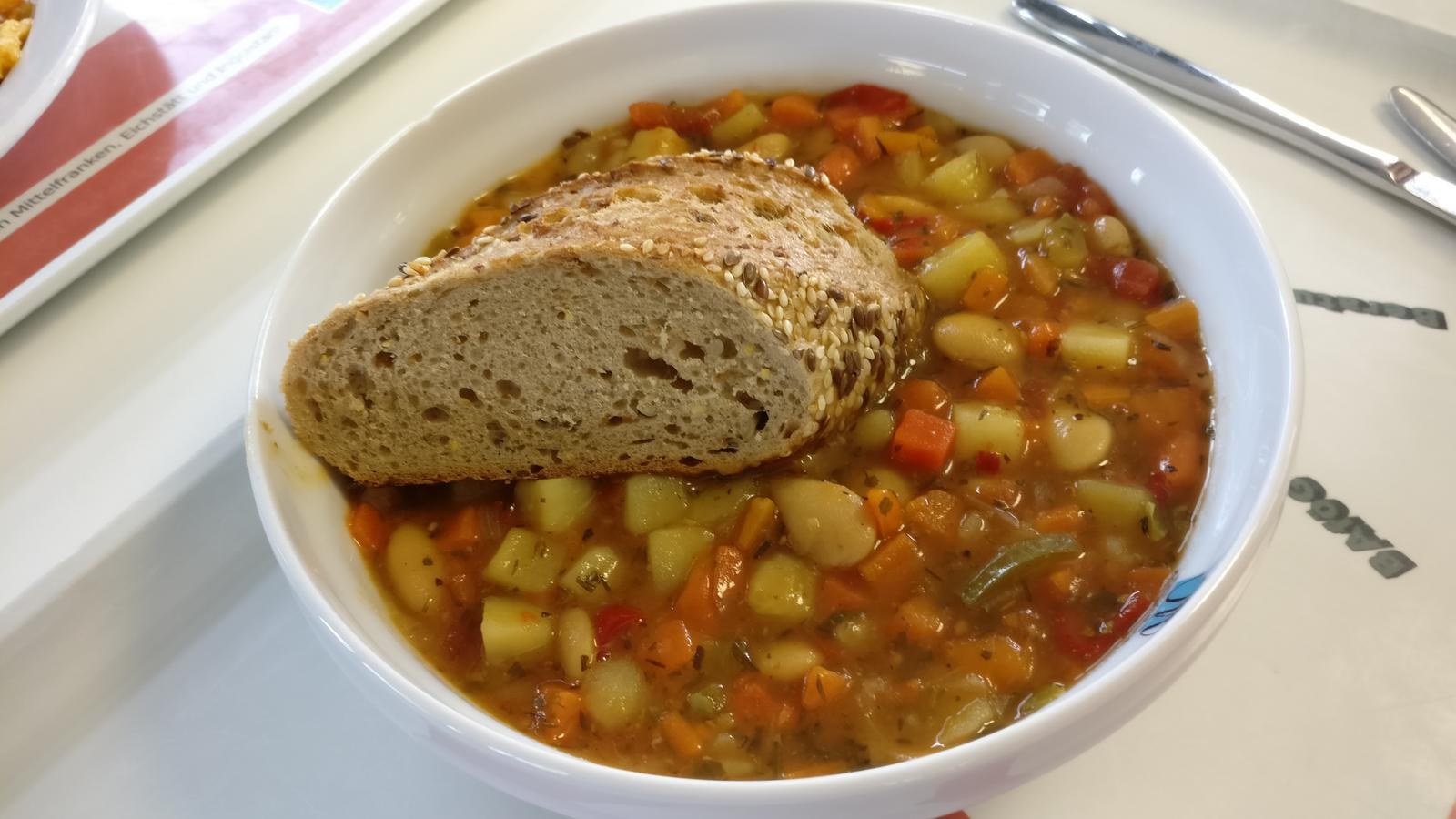 | Eins der wenigen Gerichte, das gut gewürzt war, lecker. Leider seltsame Konsistenz und das Stück Brot war eiskalt. Wenn als Alternative Schnitzel und Blumenkohleintopf zur Auswahl stehn definitiv die beste Wahl. 4/5. | |