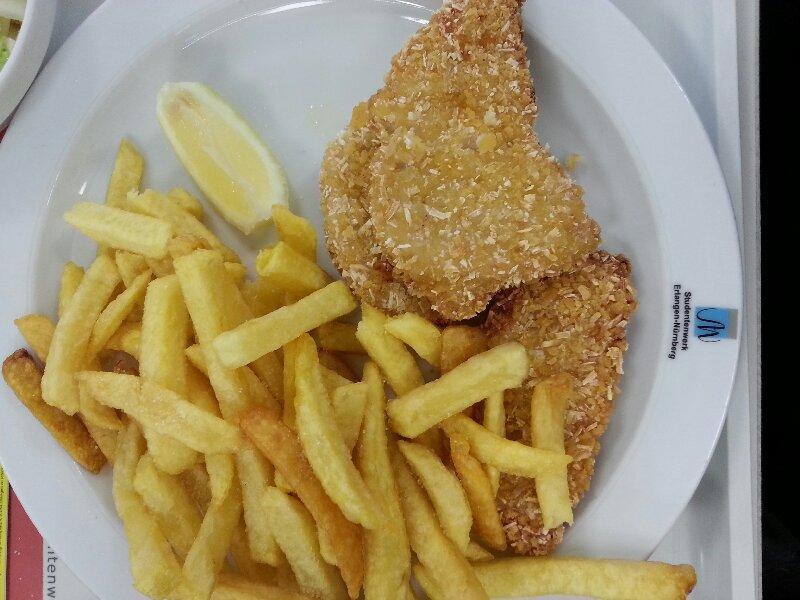 | Schmeckt wie jedes andere Mensa-Schnitzel, demnach durchschnittlich Zum Satt werden reichts | |