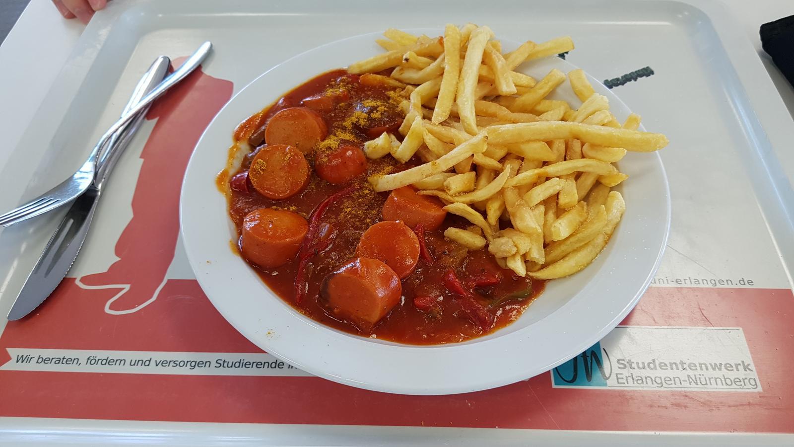 | Sosse war eher fad, Wurst ging; Pommes waren extra zu zahlen - gibt's in der Cafeteria in der Form besser. 3/5 Sterne | |