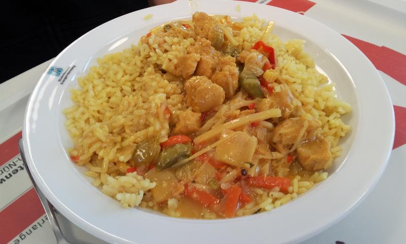 | The rice was fragrant, and good this week. I remember that everything else was a mess of sauce thrown together. The soy meat was also tasteless, and of the wrong consistency, maybe they cooked it wrong. | |