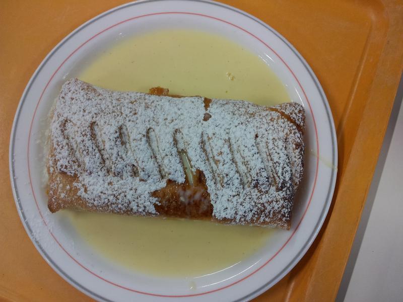 | So muss Mensaessen sein! Preiswert und lecker! Wobei ein Strudel allein den hungrigen Studenten nicht ganz zu saettigen vermag... | |