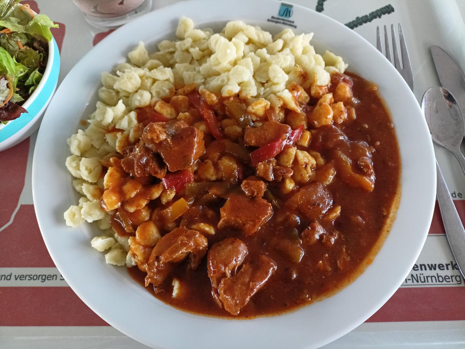 Gute Portion und hat fuer Mensa wirklich geschmeckt, Fleisch war zart.