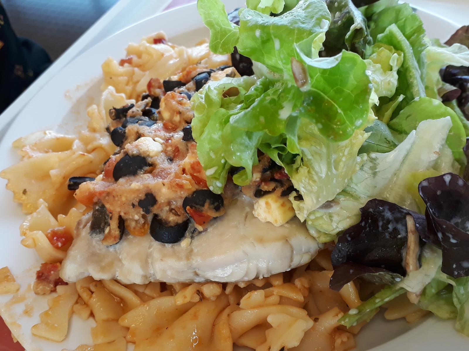 | Hm, naja. Nudeln sind normalerweise eine feine Wahl aber dieses Mal haben sie nicht überzeugt. Die Soße konnte leider auch nichts retten, war ungewöhnlich gewürzt. Wenigstens hat es satt gemacht. | |