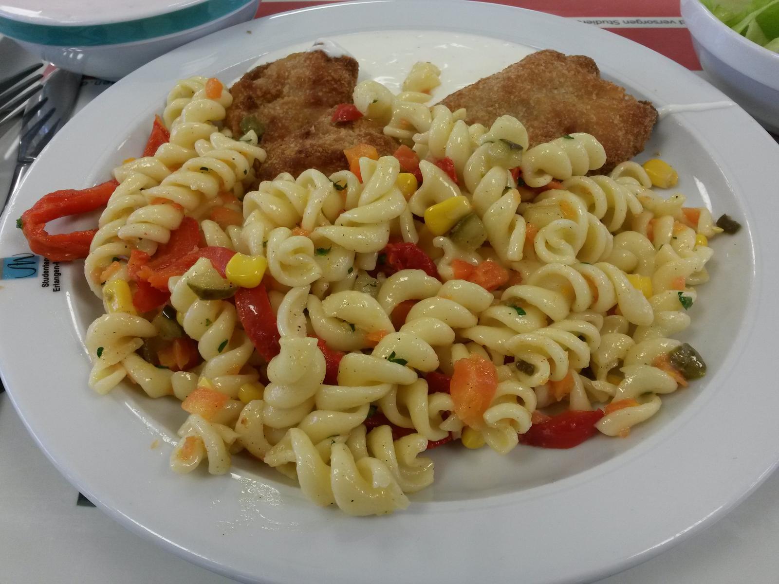| Nudelsalat und Dip in Ordnung. Hähnchenkeulenschnitzel EKELHAFT!!! Innen teilweise halbroh... Finger weg ! | |