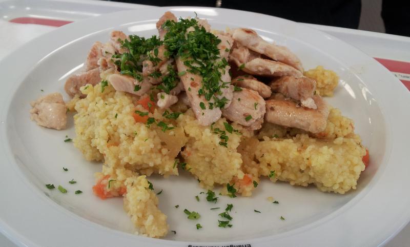 | Couscuss kriegt die Mensa selten gut hin. Geschmacklich aber ok, daher 3/5 | |