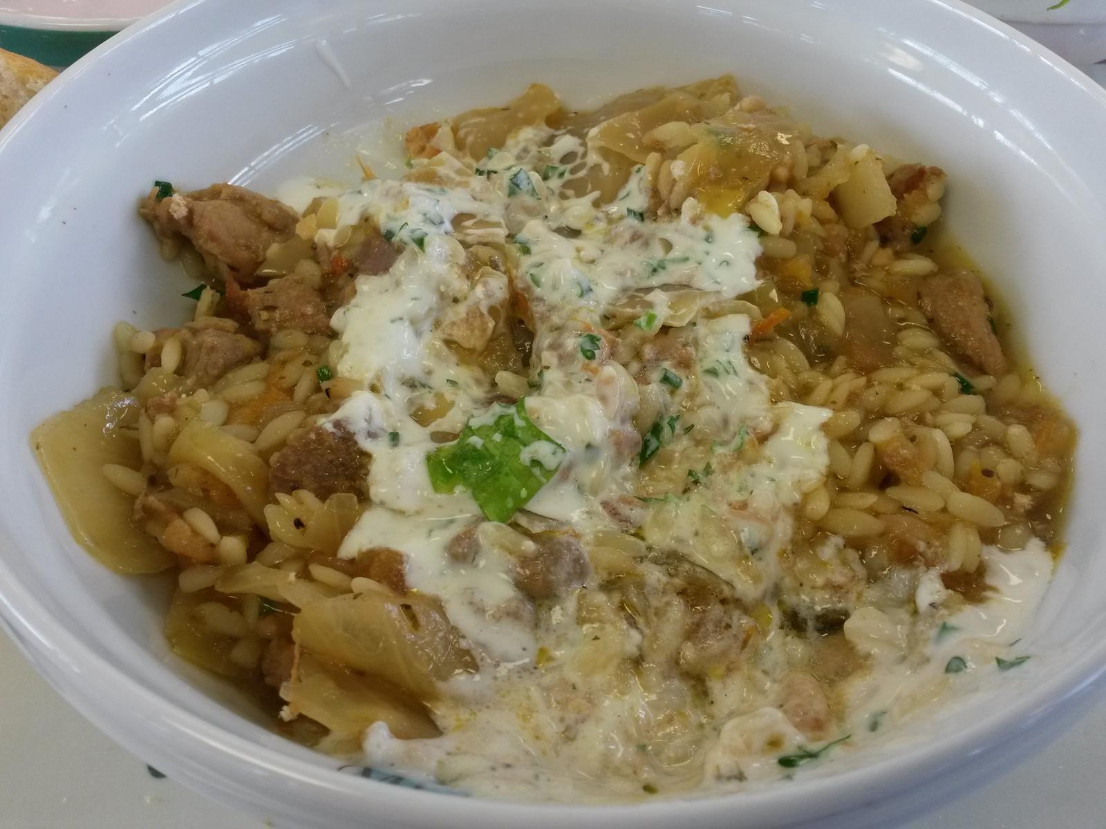 | Macht satt, jedoch insgesamt etwas eintoenig. Warum gibt es dazu ein Broetchen? Das Essen besteht zu 80% aus griechischen Nudel. Etwas Gruenzeug, wie bei MV eigentlich ueblich waere viel besser. Insgesamt leider nur 3/5, aber mit Potential nach oben. | |