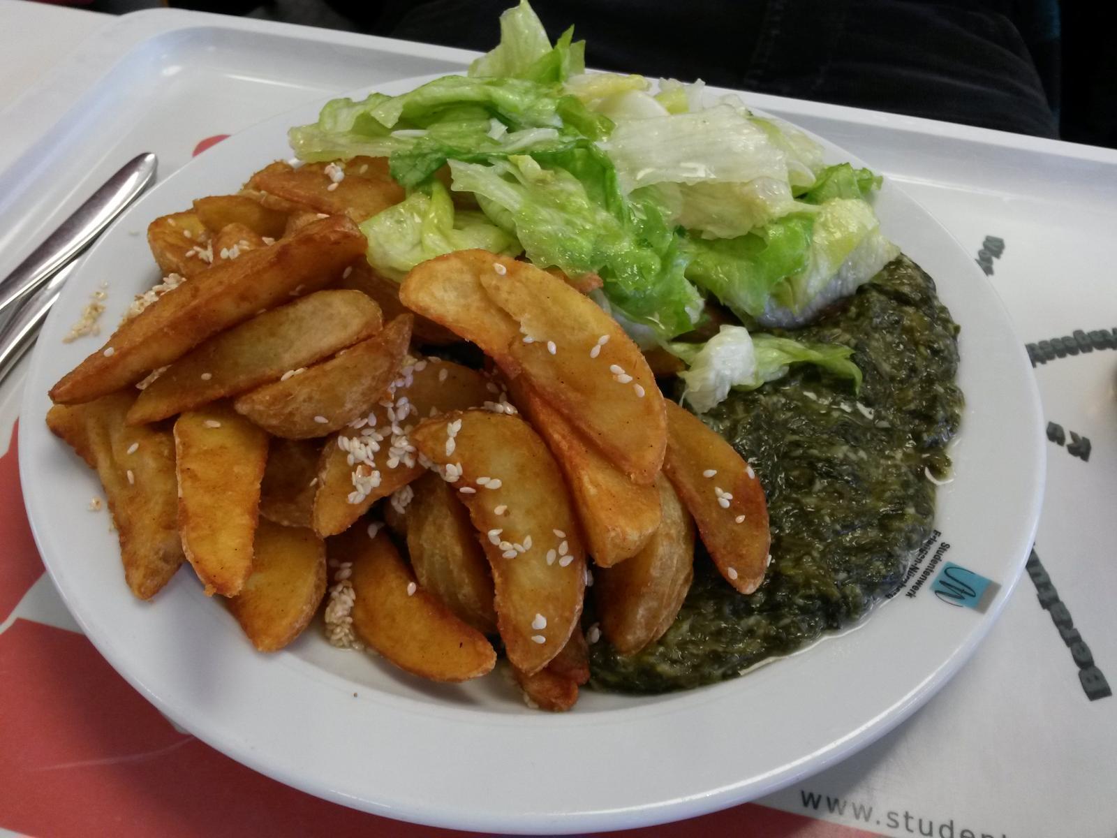 | Wirklich ein sehr gutes Gericht! Der Kokosspinat ist lecker, die Kartoffeln knusprig und der Salat verhilft dem Gericht zu einer angenehmen Frische. Ich bin begeistert, dieses fantastische Essen hat meinen Tag gerettet! | |