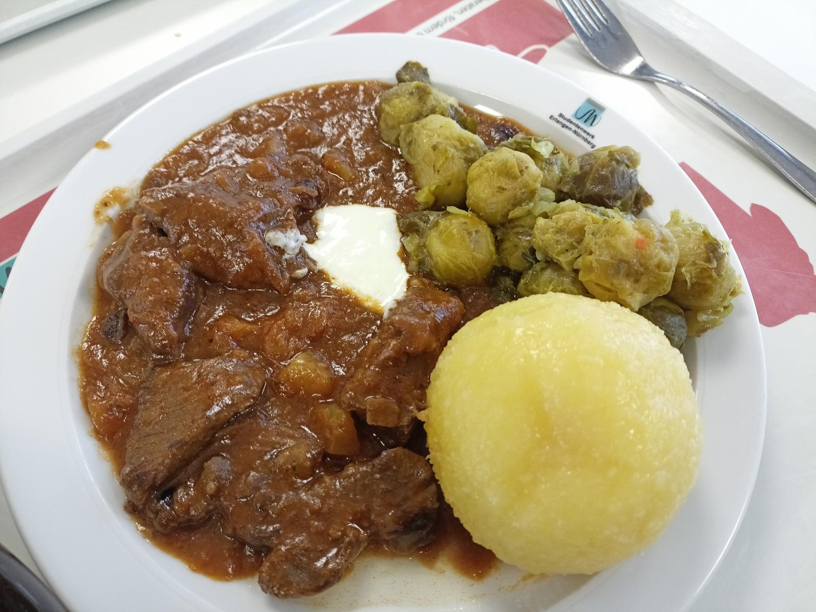 | Soße gut gewürzt, guter Geschmack. Das Ragout war für den Preis auch überraschend gut. Knödel nicht 0berkocht und genießbar. Beim Rosenkohl hört das aber dann auch wieder auf. Sehr weich und ohne biss. Geschmack dennoch okay. 4/5 | |
