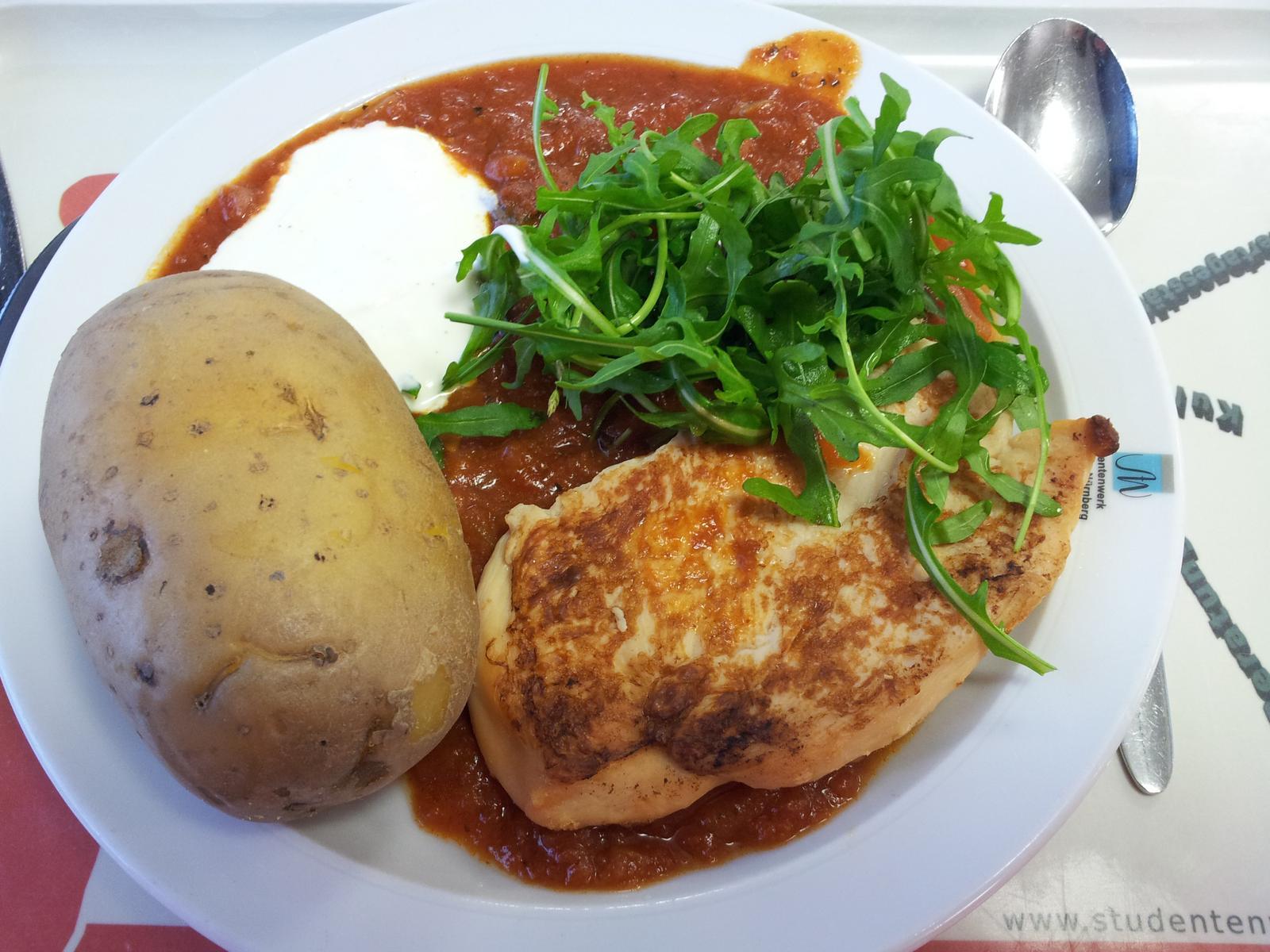 | Auf ein Mal kann die Mensa besseres Hack als die undefinierbaren Fleischabfälle für das Hacksteak verwenden. In der Vergangenheit hatte ich manchmal recht wenig Käsefüllung in der Rolle. In der Gesamtwertung empfehlen 7 von 9 Hirten das Gericht ihren Kollegen weiter. | |